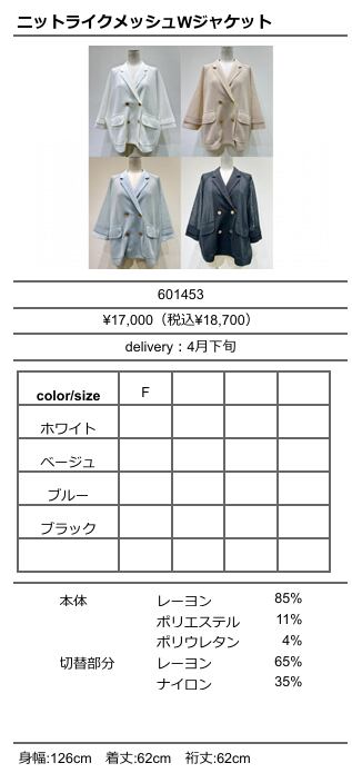 【ご予約品】《CYAN》ニットライクメッシュWジャケット 601453【送料無料】 納期 4下