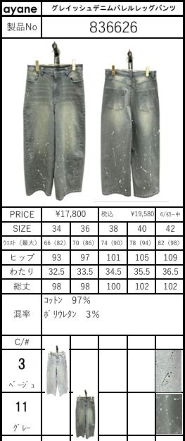 【ご予約品】《ayane》グレイッシュデニムバレルレッグパンツ 836626【送料無料】 納期 6/初~中