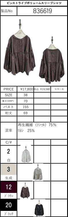【ご予約品】《ayane》ピンストライプボリュームスリーブシャツ 836619【送料無料】 納期 5/中~末