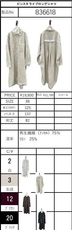 【ご予約品】《ayane》ピンストライプロングシャツ 836618【送料無料】 納期 5/中~末
