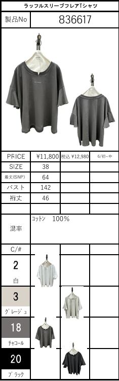 【ご予約品】《ayane》ラッフルスリーブフレアTシャツ 836617【送料無料】 納期 6/初~中