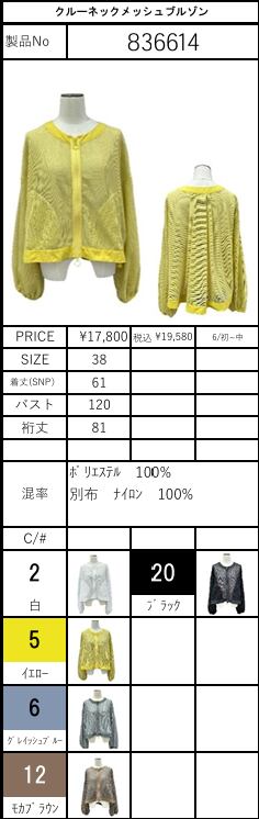 【ご予約品】《ayane》クルーネックメッシュブルゾン 836614【送料無料】 納期 6/初~中