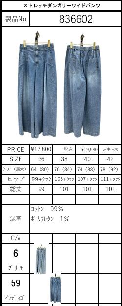 【ご予約品】《ayane》ストレッチダンガリーワイドパンツ 836602【送料無料】 納期 5/中~末