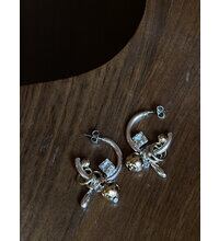 じゃらっとしたモチーフと程良いボリューム感が印象的な遊び心たっぷりのフープピアス。それぞれのパーツをバランスよく配置しつつ動きを活かしたデザインは、着けるだけで一際目立つ主役級ピアスとなっております。カラーはシルバー、ゴールドの他に、SV×GDのミックスもご用意いたしました。同型でイヤリングもご用意いたしております。