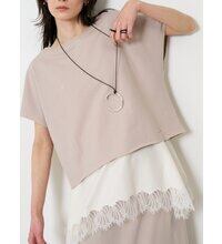 ゆとりのあるボックスシルエットに、肩を自然に覆うフレンチスリーブ風のデザインで気になる二の腕をさりげなくカバーしつつ、抜け感のある軽やかなバランスに仕上げています。
