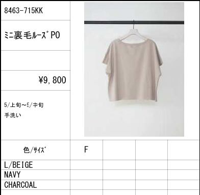 去年大好評だったミニ裏毛ルーズPOから、新色が出ました。大人らしいベーシックな色味を揃え、下にセットアップで合わせるデザインSKをご用意(2863-716KK)