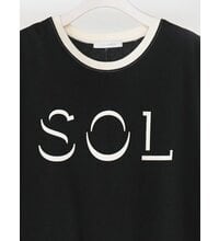 配色の衿がいつものフレンチTシャツに遊び心を加えてくれるリンガーロゴフレンチ。浮き出たようなシンプルなロゴフォントが衿の配色と相まってモードな雰囲気+さりげなくスポーティーさも加えつつ、全体はクリーンで大人っぽい印象に仕上げています。”SOL”=ラテン語で「太陽」