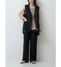 やや長めの丈感が縦のラインを強調し、さっと羽織るだけでスタイリングにモードなニュアンスをプラスします。深めのVネックが顔まわりをすっきりと見せ、インナーとのレイヤードもバランスよく決まるデザイン。フロントのニュアンス釦がさりげないアクセントになり、シンプルながら存在感のある一着に仕上がっています。