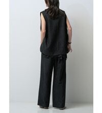 同素材のボトムと合わせたセットアップスタイルなら、より洗練されたモード感のある着こなしに。