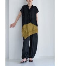 裾にはゴムを入れ、さらにゴムを内側に巻き込む仕様にすることで、カジュアル感を抑え、きれいめなモード感をプラス。