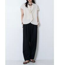 肩をやさしく覆うフレンチスリーブと、立体感あるボックスシルエットで抜け感あるバランスに。