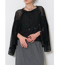 シャツライクな胸ポケットディテールが、甘さを抑えたモードな印象に。