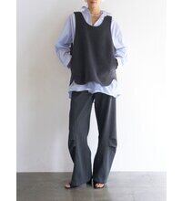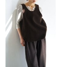 深く衿ぐりをあけたUネックデザインと大胆にあいたアームホールは中に着るものを選ばず、着脱もイージーにしていただけます。通常はコート等に使用する厚手で上質な素材を使用、ミニマルなデザインながら存在感があり、シンプルな日常のコーディネートを格上げしてくれるアイテムです。