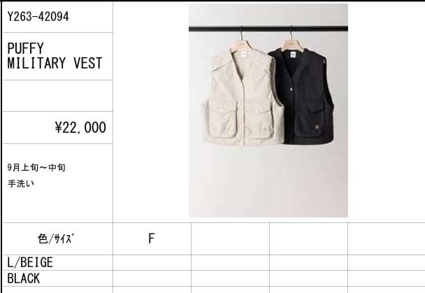 【ご予約品】《YENN》PUFFY MILITARY VEST [Y263-42094]【送料無料】 納期 9月上旬~中旬