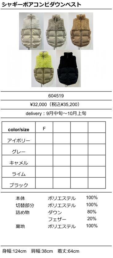 【ご予約品】《CYAN》シャギーボアコンビダウンベスト 604519【送料無料】 納期 9⽉中旬〜10⽉上旬