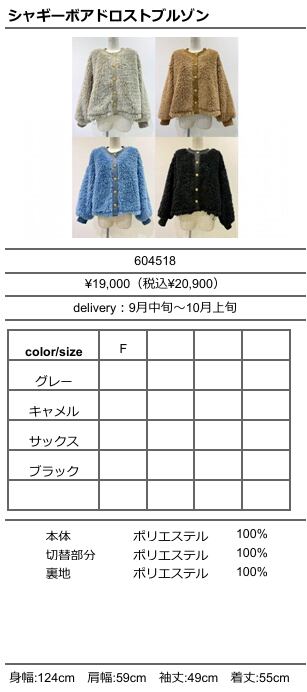 【ご予約品】《CYAN》シャギーボアドロストブルゾン 604518【送料無料】 納期 9⽉中旬〜10⽉上旬