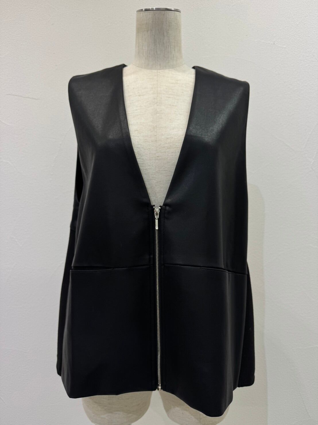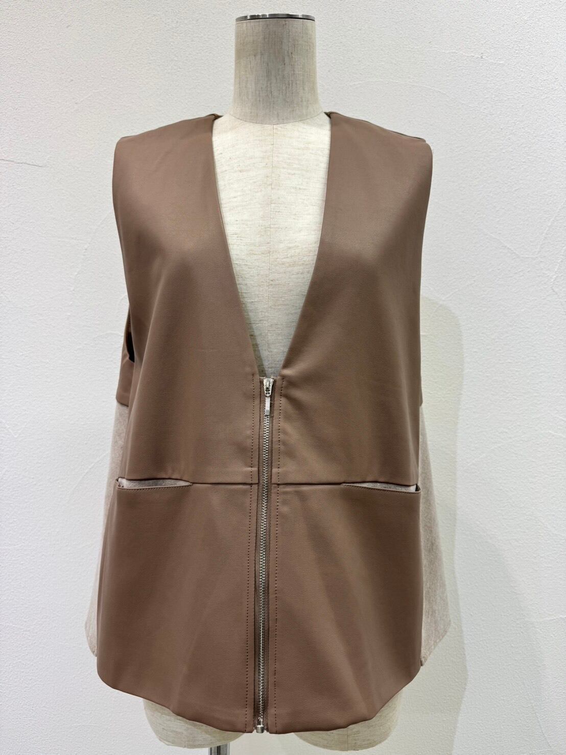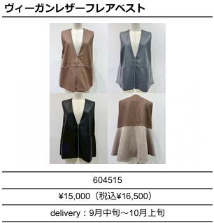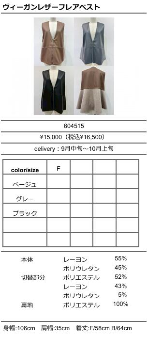 【ご予約品】《CYAN》ヴィーガンレザーフレアベスト 604515【送料無料】 納期 9⽉中旬〜10⽉上旬