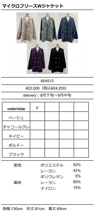 【ご予約品】《CYAN》マイクロフリースWジャケット 604513【送料無料】 納期 8⽉下旬〜9⽉中旬