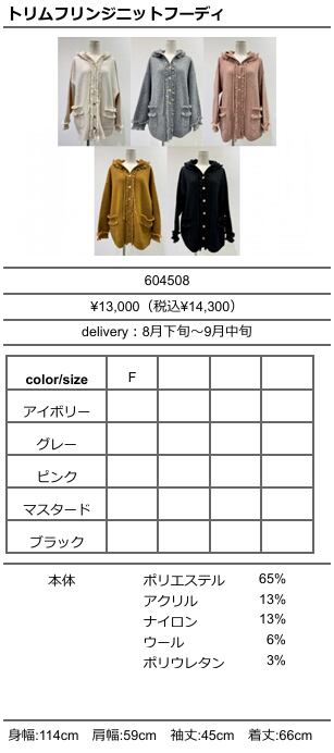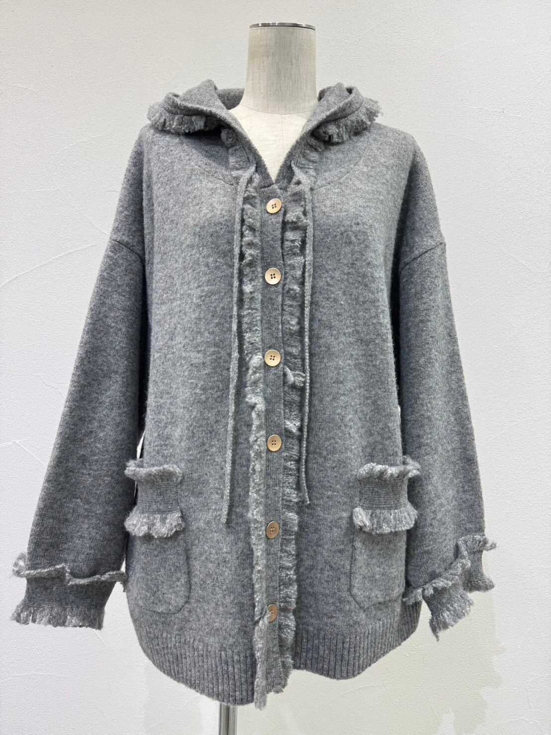 【ご予約品】《CYAN》トリムフリンジニットフーディ 604508【送料無料】 納期 8⽉下旬〜9⽉中旬