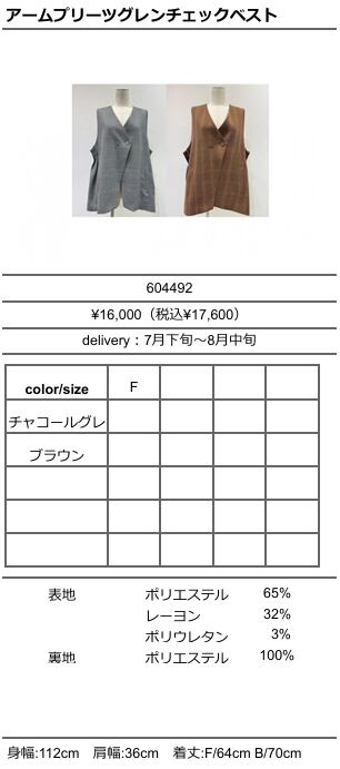【ご予約品】《CYAN》アームプリーツグレンチェックベスト 604492【送料無料】 納期 7⽉下旬〜8⽉中旬