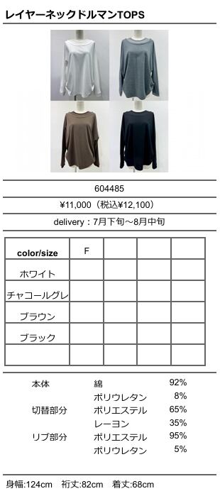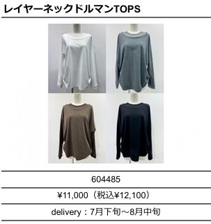 【ご予約品】《CYAN》レイヤーネックドルマンTOPS 604485【送料無料】 納期 7⽉下旬〜8⽉中旬