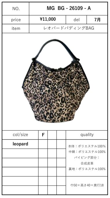 【ご予約品】《MARGAUX VINTAGE》レオパードパディングBAG (MG BG - 26109 - A)【送料無料】 納期 7月
