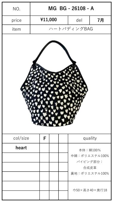 【ご予約品】《MARGAUX VINTAGE》ハートパディングBAG (MG BG - 26108 - A)【送料無料】 納期 7月