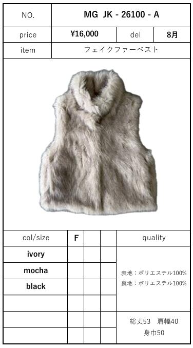 【ご予約品】《MARGAUX VINTAGE》フェイクファーベスト (MG JK - 26100 - A)【送料無料】 納期 8月
