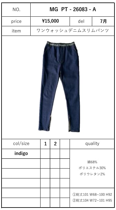 【ご予約品】《MARGAUX VINTAGE》ワンウォッシュデニムスリムパンツ (MG PT - 26083 - A)【送料無料】 納期 7月
