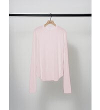 繊細な綿素材のリブ生地を使用。通常の糸と比較して格段に毛羽が少なく、シルクのような光沢や滑らかさがでるというのが特徴のコンパクトヤーンを使用したリブ生地を採用、上品な滑らかさのあるコットンリブは肌さわりも良くおすすめです。 程よく体に沿うようにデザインされているので、レイヤードのインナーにも最適です。 後衿ぐりに施したワンポイント刺繍もほどよいアクセントに。 衿ぐりはあえて狭く設定、ニットやシャツの下に着たときに衿ぐりからTシャツを覗かせるスタイリングがおすすめの着こなしです。