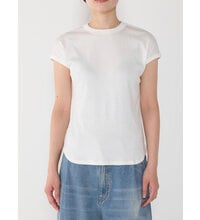 通常の糸と比較して格段に毛羽が少なく、シルクのような光沢や滑らかさがでるというのが特徴のコンパクトヤーンを使用したリブ生地を採用、上品な滑らかさのあるコットンリブは肌さわりも良くおすすめです。 タンクトップを1枚で着るのに抵抗がある大人のための、肩周りを包んで隠してくれる、すっきりとしたシルエットのTシャツです。 程よく体に沿うようにデザインされているので、レイヤードのインナーにも最適です。 後衿ぐりに施したワンポイント刺繍もほどよいアクセントに。