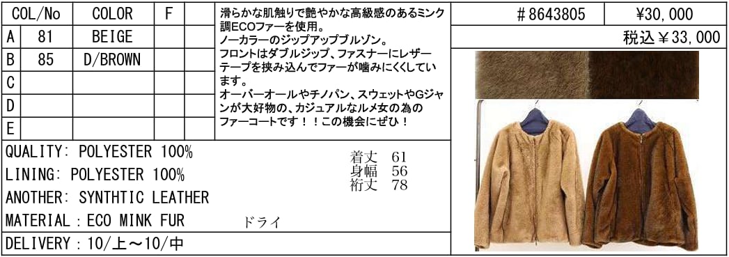 【ご予約品】《LE MELANGE》ECO MINK FUR #8643805【送料無料】 納期 10/上~10/中