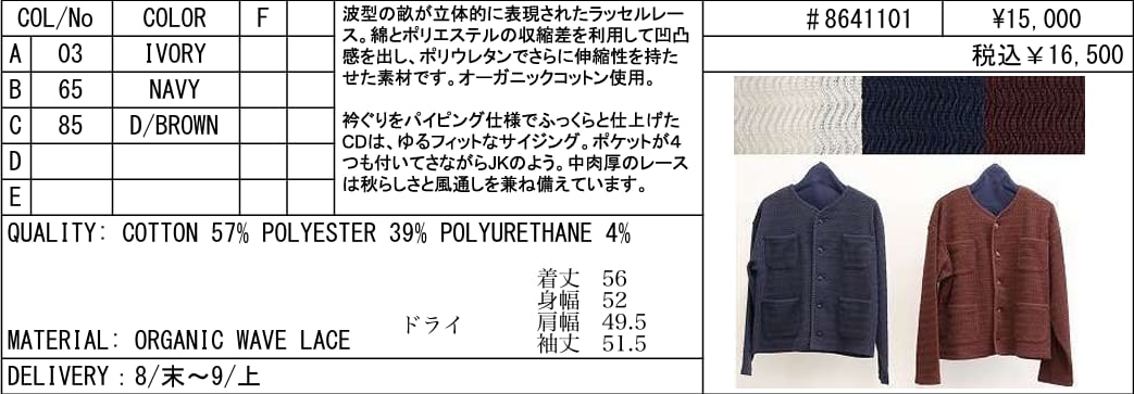 【ご予約品】《LE MELANGE》ORGANIC WAVE LACE #8641101【送料無料】 納期 8/末~9/上