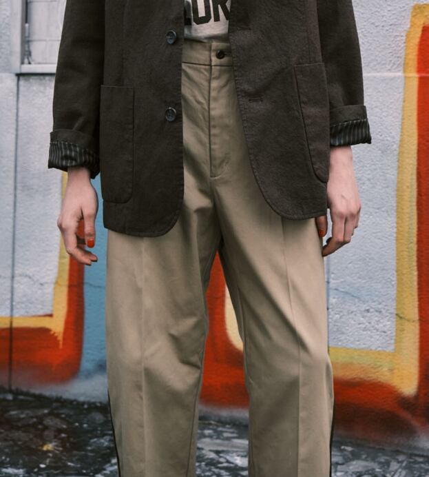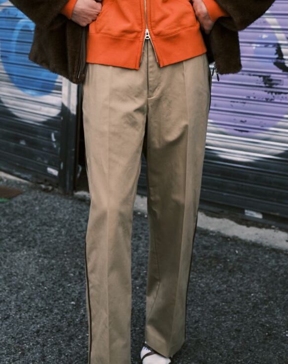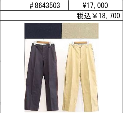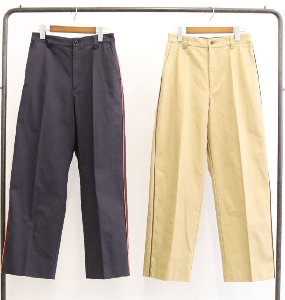 フランス軍の隠れた名品、セレモニートラウザーからデザインを落とし込んだパンツ。