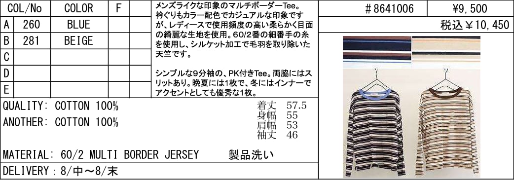 【ご予約品】《LE MELANGE》60/2 MULTI BORDER JERSEY #8641006 納期 8/中~8/末