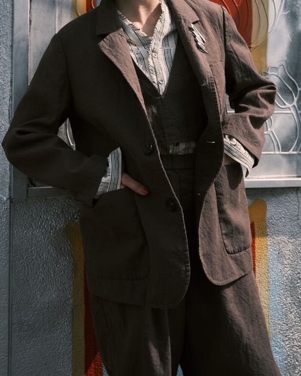 深みのある先染め綿麻シャンブレー。