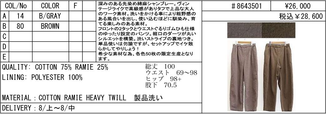 【ご予約品】《LE MELANGE》COTTON RAMIE HEAVY TWILL #8643501【送料無料】 納期 8/上~8/中