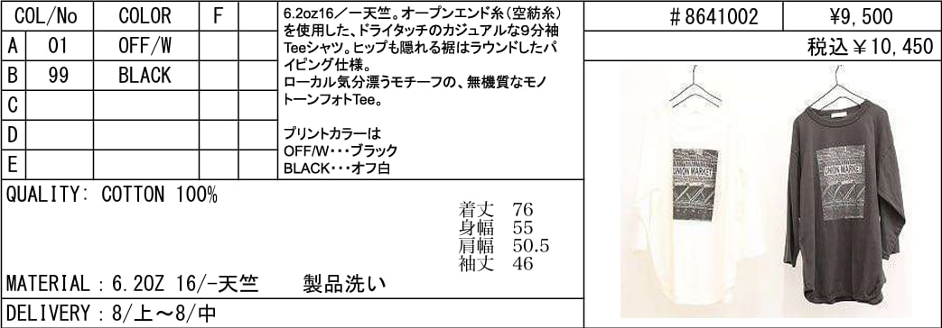【ご予約品】《LE MELANGE》6.2OZ 16/-天竺 #8641002 納期 8/上~8/中