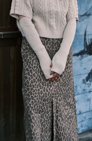 セミタイトシルエットのロングスカート。