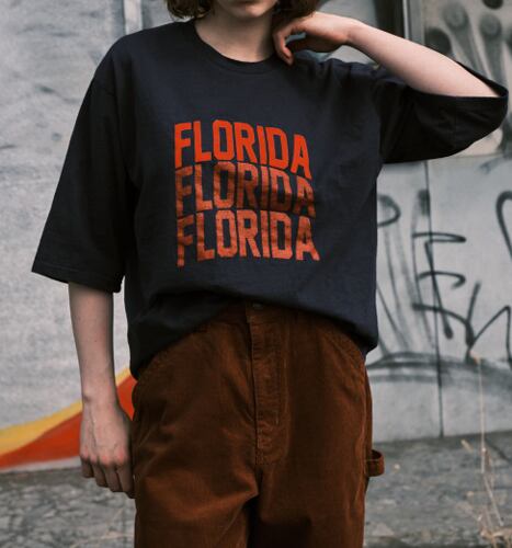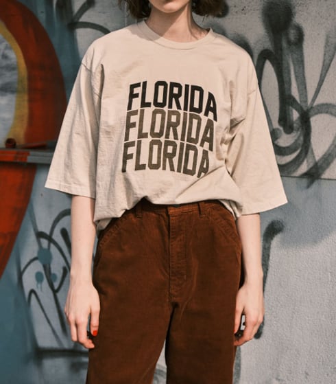 フロッキーと顔料を同色でプリントしたロゴTeeです。