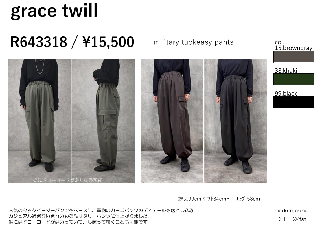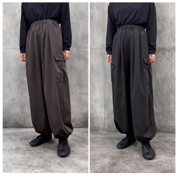 人気のタックイージーパンツをベースに、軍物のカーゴパンツのディテールを落とし込みカジュアル過ぎないきれいめなミリタリーパンツに仕上がりました。