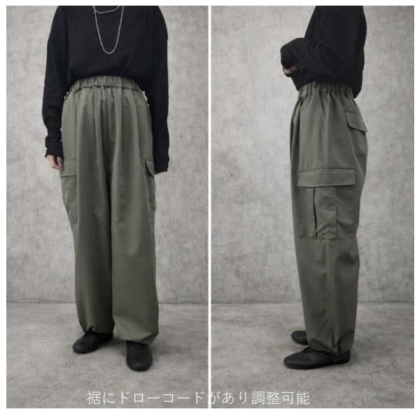 裾にはドローコードがはいっていて、しぼって履くことも可能です。