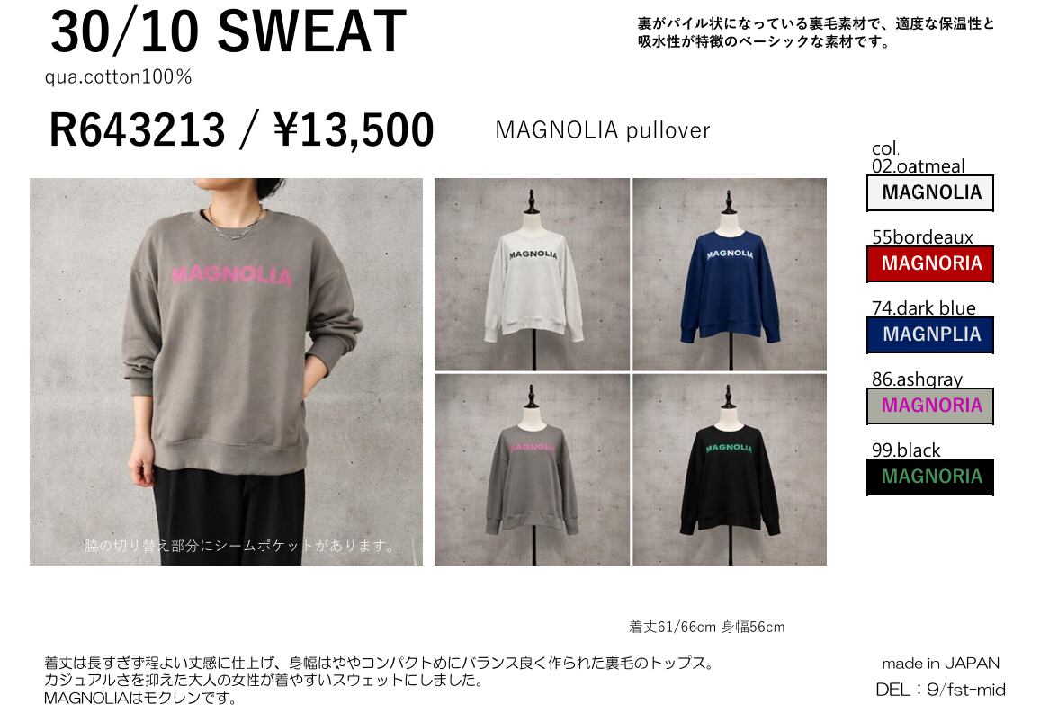 カジュアルさを抑えた大人の女性が着やすいスウェットにしました。