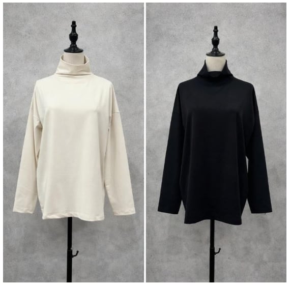 1枚ではもちろん、レイヤードコーデのインナーとしても使えるハイネックトップス。