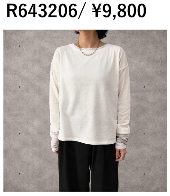 程よいゆとりを持たせたレイヤードしやすいサイズ感で、袖口をシアー感のある素材に切り替えたトップスです。