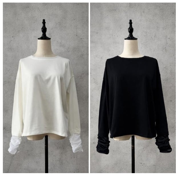 袖口は重ね着をしているような仕様になっているので、一枚着としても。