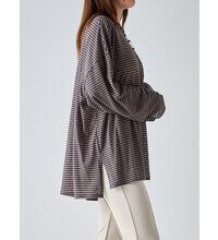 季節の変わり目にちょうどいい、着回し力の高い1枚。ほんのり透けるシアー素材がシンプルなボーダーに女性らしいニュアンスをプラス。カジュアルすぎず、どこか繊細で大人っぽい印象に仕上がってます。