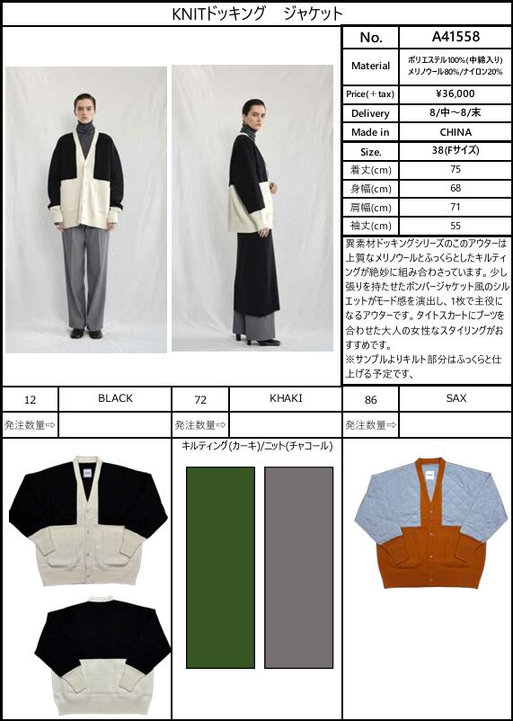 【ご予約品】《ANTHOM》KNITドッキング ジャケット [A41558]【送料無料】 納期 8/中〜8/末