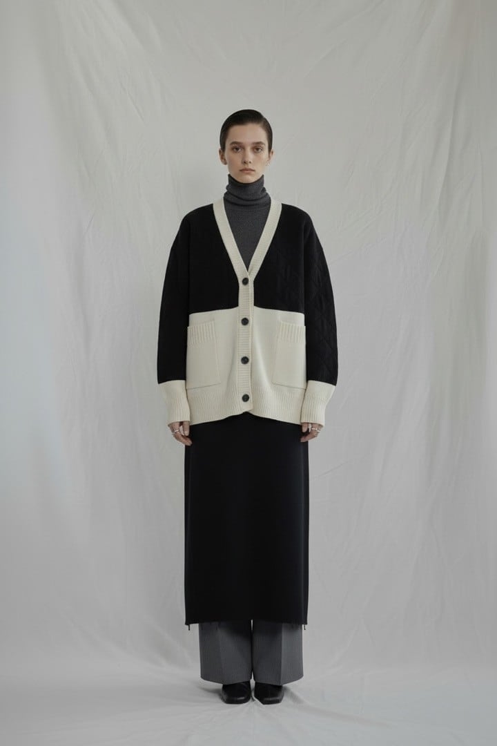 異素材ドッキングシリーズのこのアウターは上質なメリノウールとふっくらとしたキルティングが絶妙に組み合わさっています。