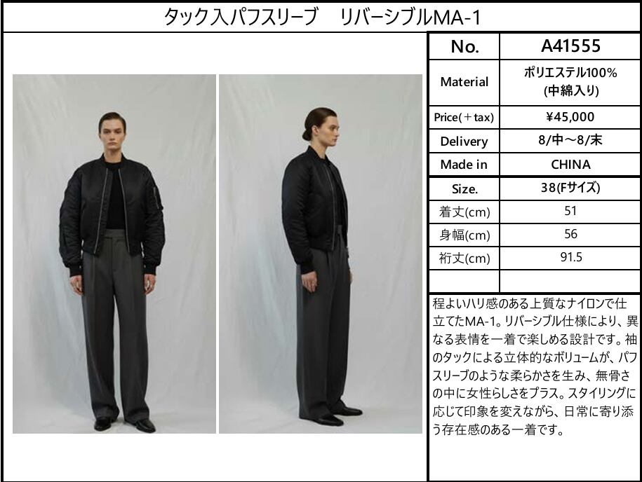 【ご予約品】《ANTHOM》タック⼊パフスリーブ リバーシブルMA-1 [A41555]【送料無料】 納期 8/中〜8/末